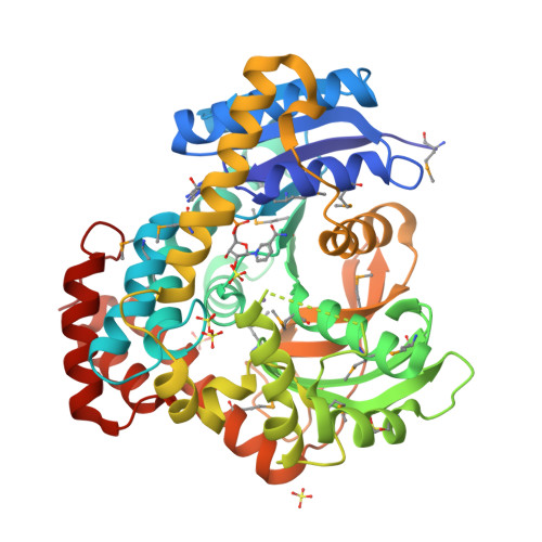 Here, we present, for the first time, the three-dimensional structure (using single-wavelength anomalous dispersion methods, harnessing extensive non-crystallographic symmetry) of the 6-phospho-beta-glycosidase, BglT, from T.maritima in native and complexed (NAD(+) and Glc6P) forms.