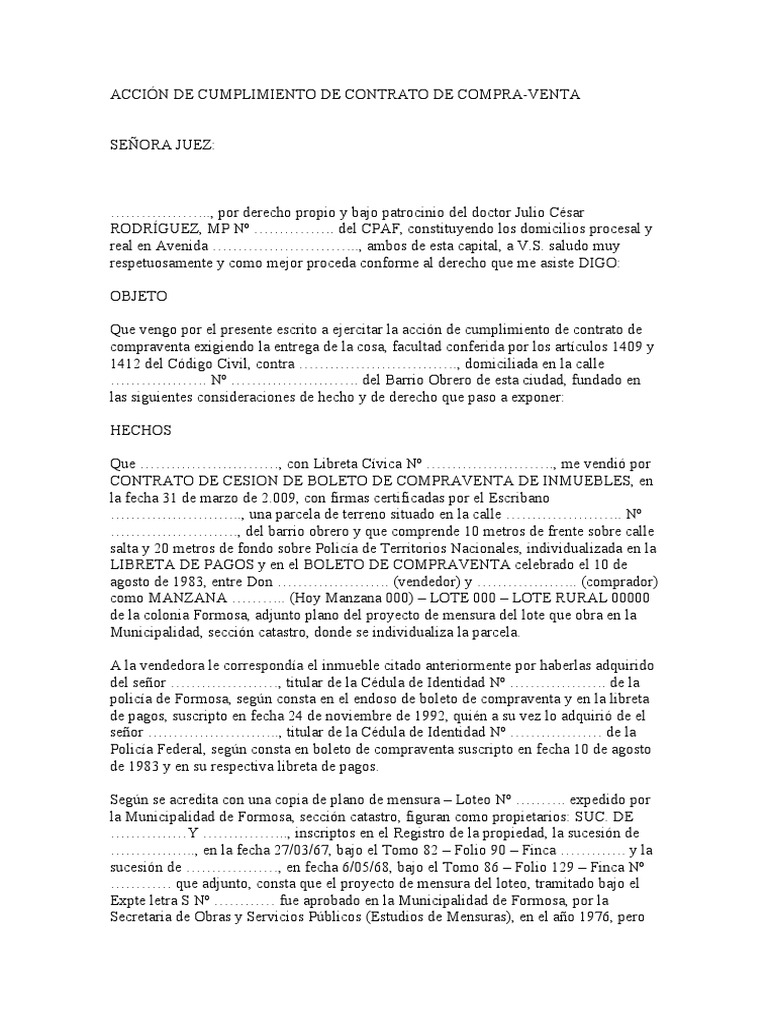 Acción de Cumplimiento de Contrato de Compra PDF