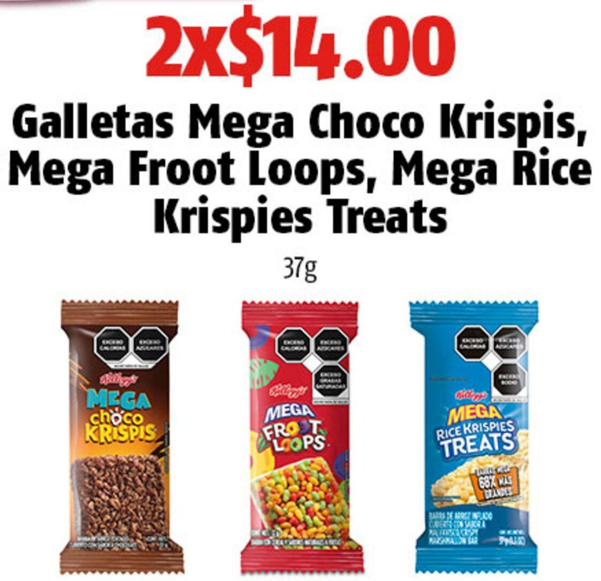 Galletas Mega Choco Krispis, Mega Froot Loops, Mega Rice Krispies
