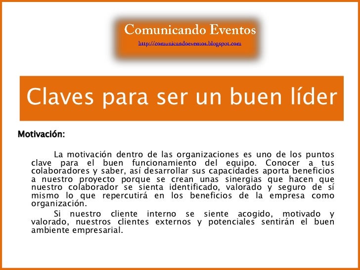 1. Empodera a los demás. Un buen líder es aquel capaz de infundir confianza y motivación en las personas del equipo que dirige. Se trata de una figura que genera confianza y crea a su alrededor un clima positivo, donde los trabajadores se sienten cómodos a la vez que se perciben como personas capaces de lograr cosas conjuntamente. Así, los.