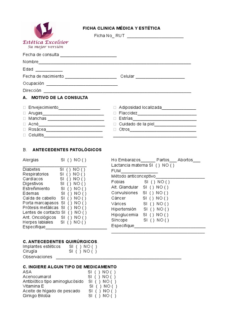 Ficha Clinica Facial Especialidades Medicas Rtt