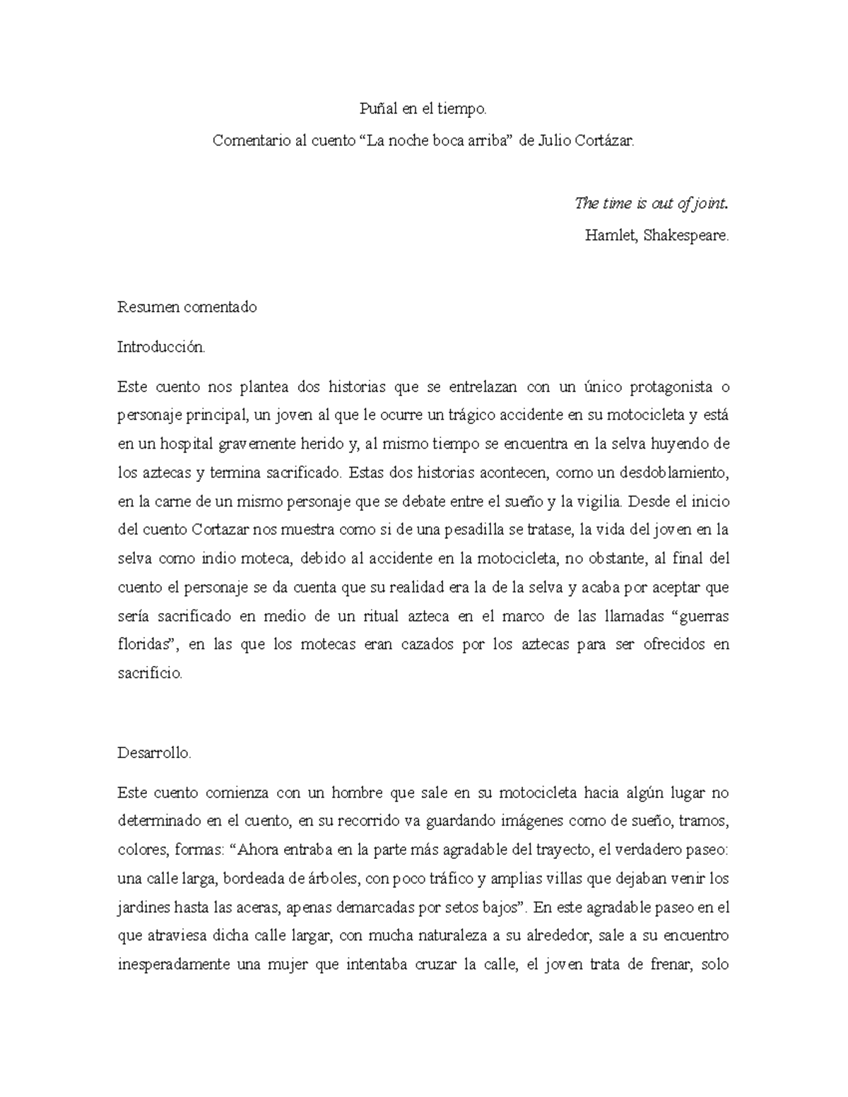 Resumen comentado la noche boca arriba Humanística II UCC Studocu