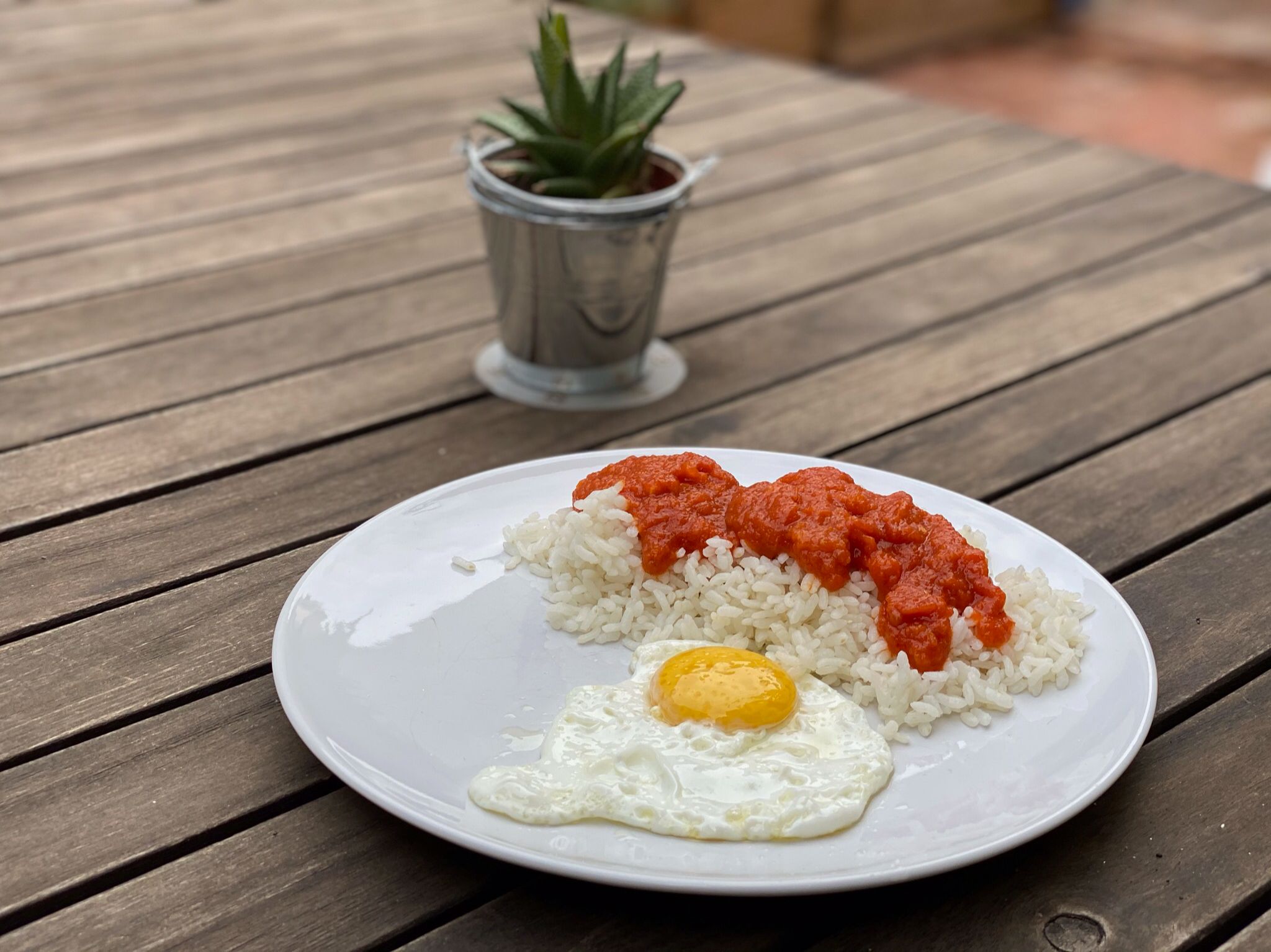 Arroz blanco con huevo frito y tomate Receta de Paco Cookpad