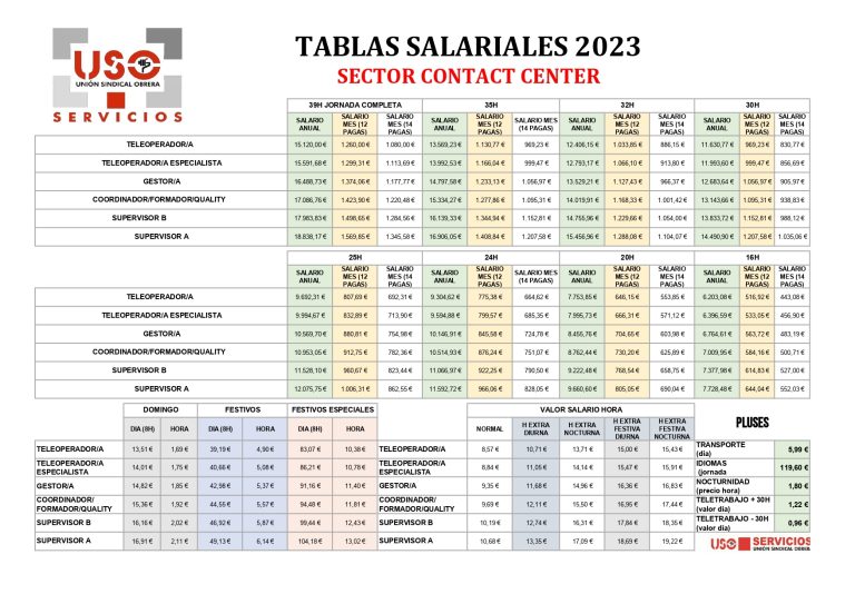 Tablas salariales Contact Center 2023 fsuso