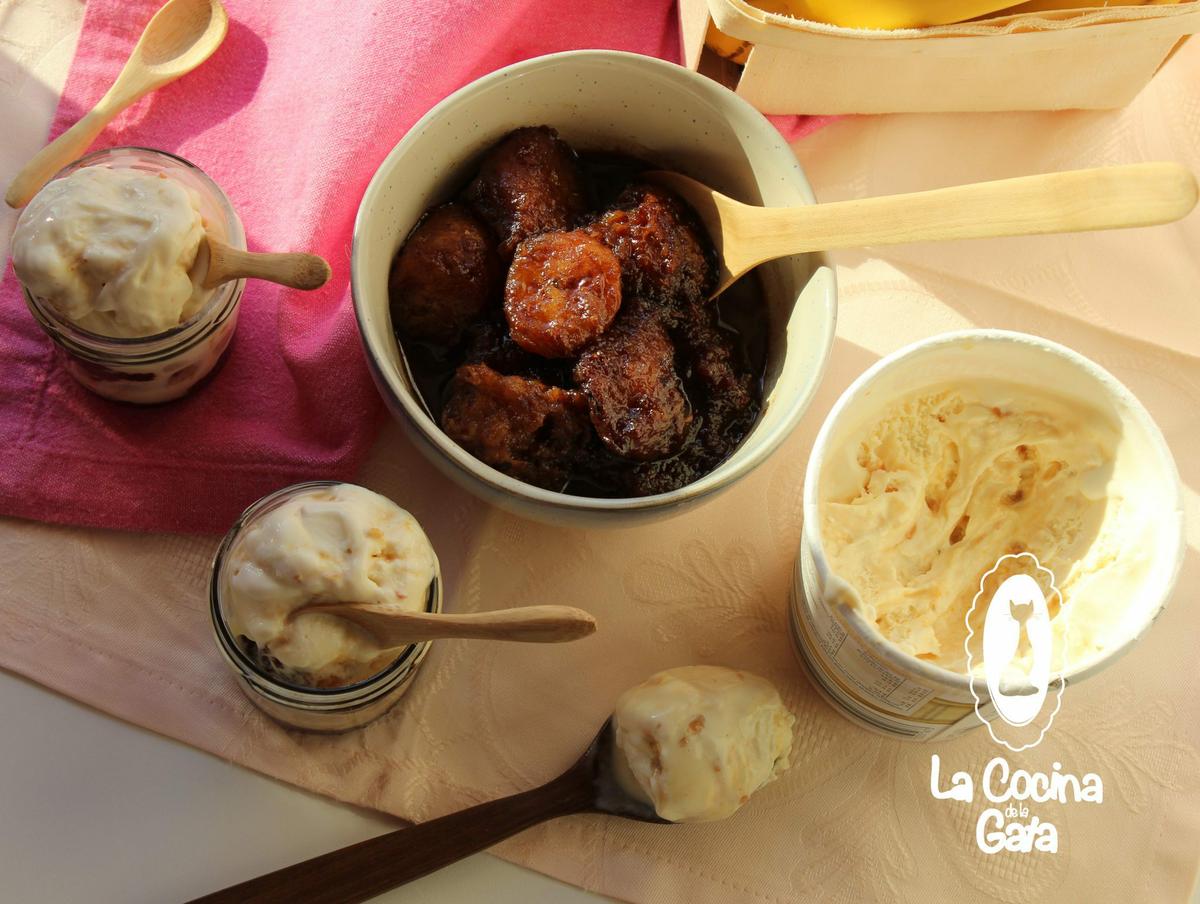 Vasitos de dulce de plátano y helado de vainilla Cocina
