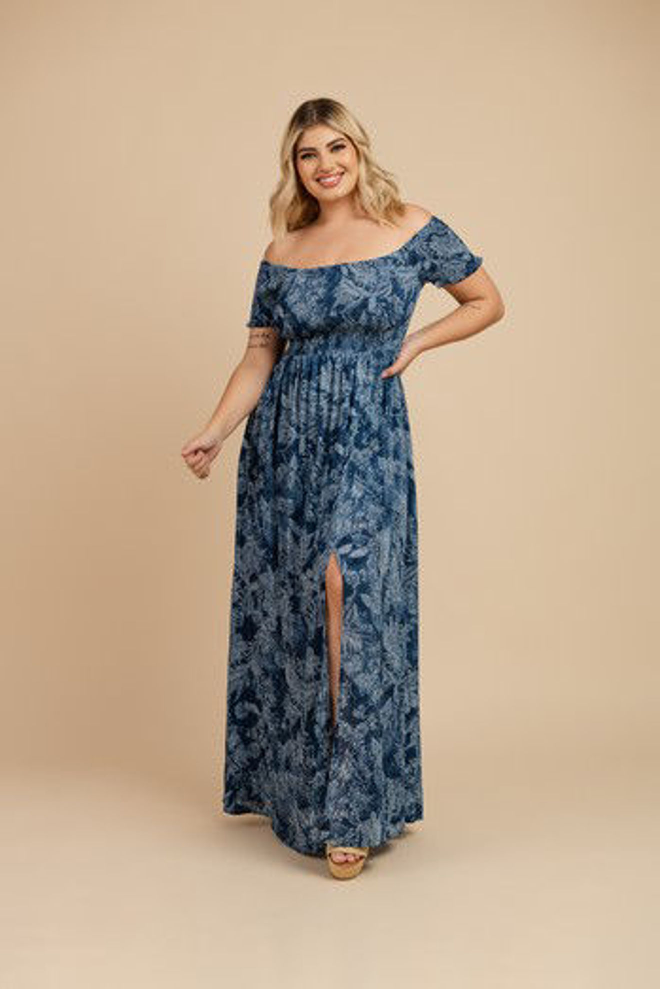 Vestido largo nido de abeja con estampado buganvilla. Vestido largo con nido de abeja en la parte del escote, elástico. Es ideal la tela. Es talla única. talla hasta una M. La modelo mide 1.70cm y lleva una S. Al comprar este producto puede obtener hasta 44 puntos de fidelidad.